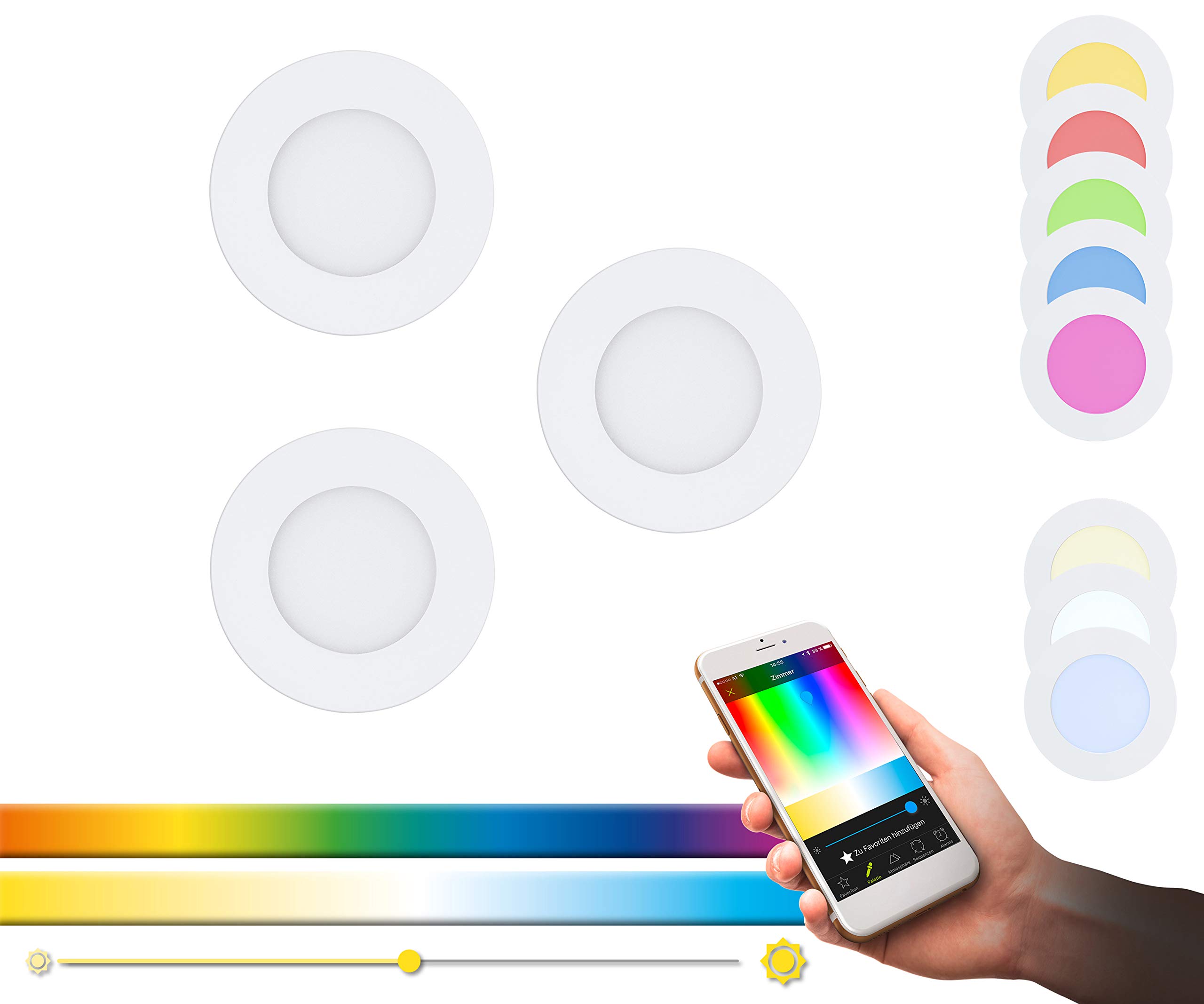- Die EGLO connect 3er-Set LED Einbauleuchten Fueva-C ermöglichen die Steuerung über Smartphone, Tablet oder Fernbedienung