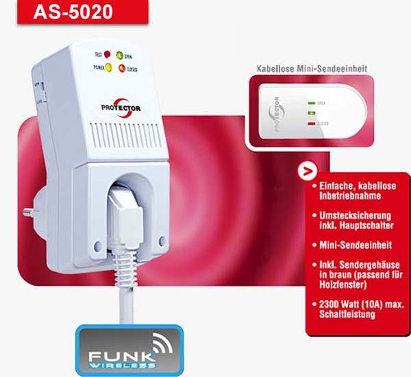 - Das Modell PROTECTOR AS-5020.3 ermöglicht eine kabellose Installation, da das Kabel zwischen Fenster-Sensoren und Steuerungs-Stecker entfällt.