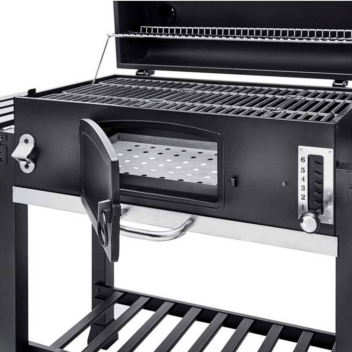 - Die Holzkohlewanne ist 6-stufig höhenverstellbar, was eine präzise Temperaturregelung ermöglicht.