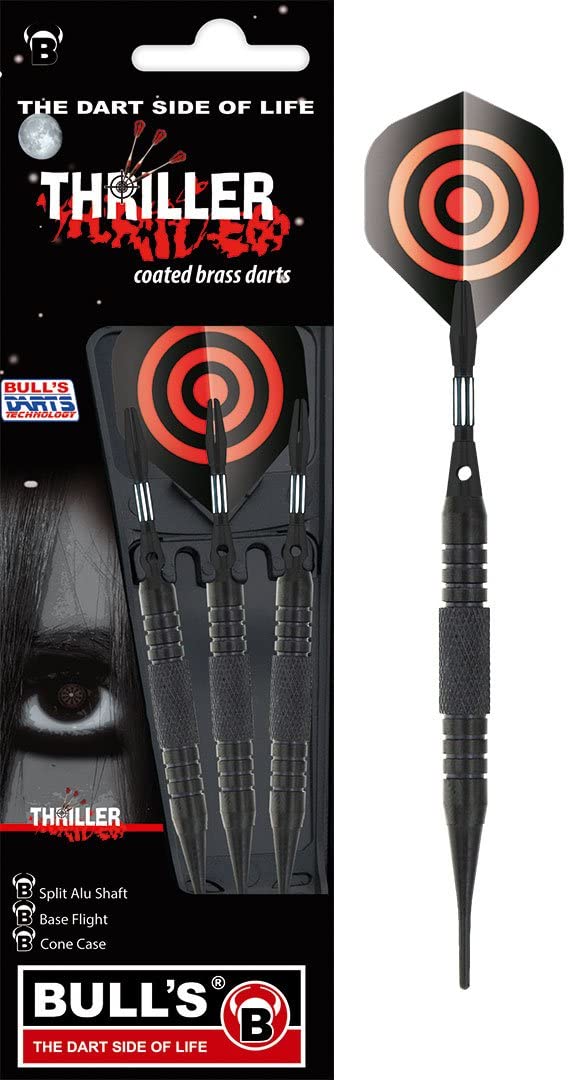 - Die BULL'S Erwachsene Dart 18g Thriller Soft verfügen über ein pulverbeschichtetes Brass-Barrel, das für eine hohe Haltbarkeit sorgt.