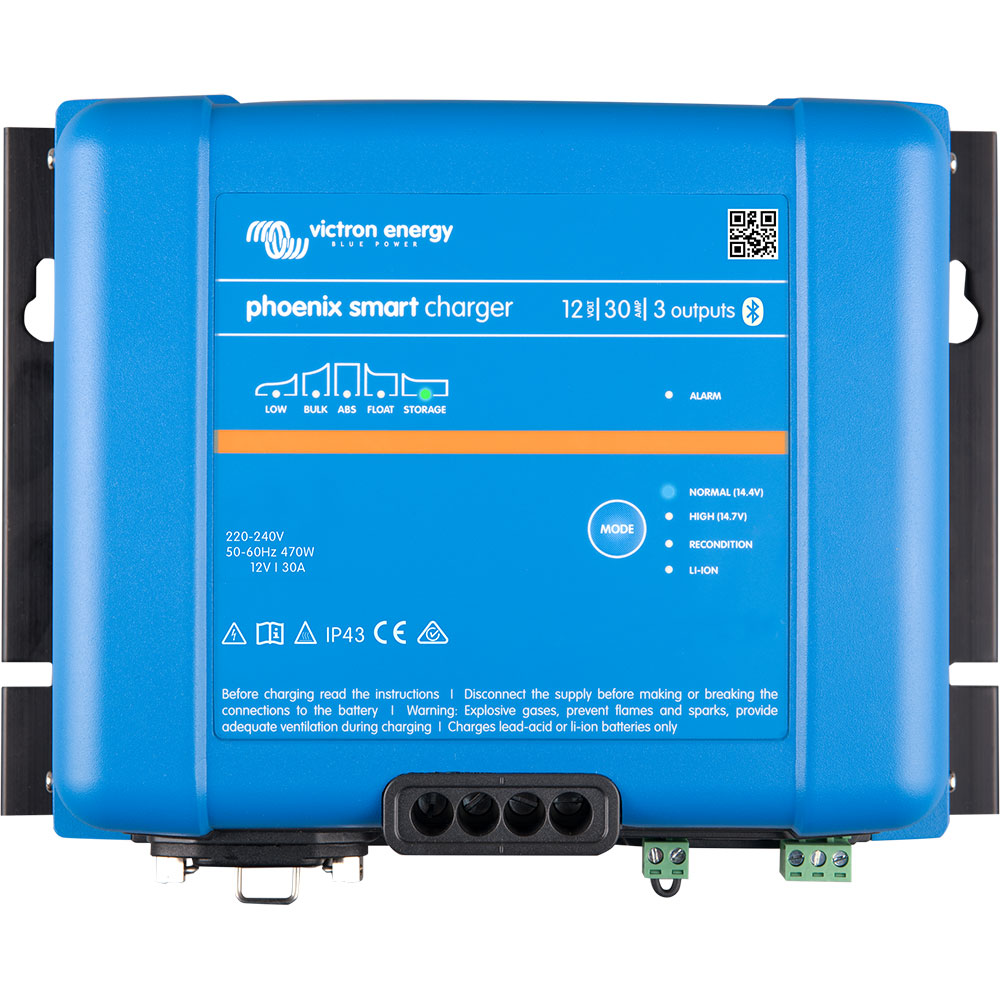 - Der Phoenix Smart Charger 12/30(3) IP43 von Victron Energy ist ein leistungsstarkes Batterieladegerät mit drei Ladeausgängen, die jeweils den vollen Ladestrom von 30A liefern können.