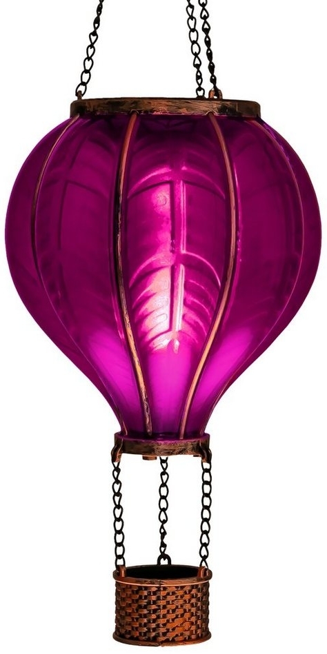 Lassen Sie sich von der Solar Laterne im Heißluftballon Design verzaubern. Mit 20 warm-weißen LEDs erzeugt sie einen beeindruckenden Flammeneffekt und sorgt für eine stimmungsvolle Atmosphäre in Ihrem Garten. Die Gesamthöhe beträgt ca. 40,5 cm und die Laterne wird inklusive einer Metallkette geliefert. Dank der Solarzelle ist die Leuchte kabellos und benötigt keine Batterien, was sie besonders umweltfreundlich macht. **Highlights** - Heißluftballon Design für eine ansprechende Optik - 20 warm-weiße LEDs für einen realistischen Flammeneffekt - Kabellose Nutzung dank Solarzelle - Inklusive Metallkette zum einfachen Aufhängen - Gesamthöhe ca. 40,5 cm für eine auffällige Präsenz **Produkteigenschaften** - Farbe: lila - Beleuchtung: warm-weiße LEDs - Energiequelle: Solarzelle - Verwendung: dekorative Beleuchtung für den Garten
