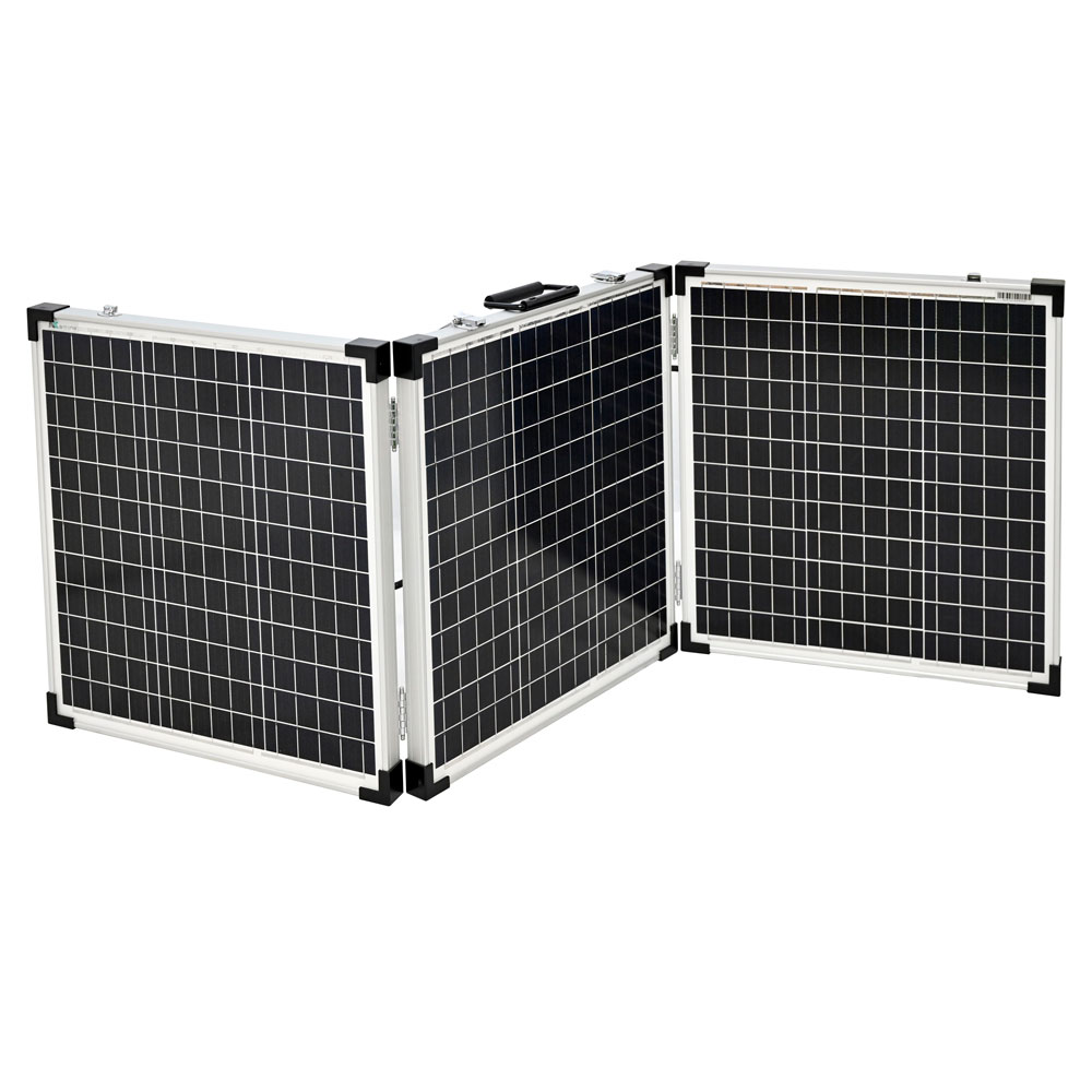 - Durch die integrierten Standfüße lässt sich das Solarpanel optimal zur Sonne ausrichten, und es ist mit einem Gewicht von 13,5 kg sowie kompakten Maßen im zusammengeklappten Zustand bequem transportierbar.