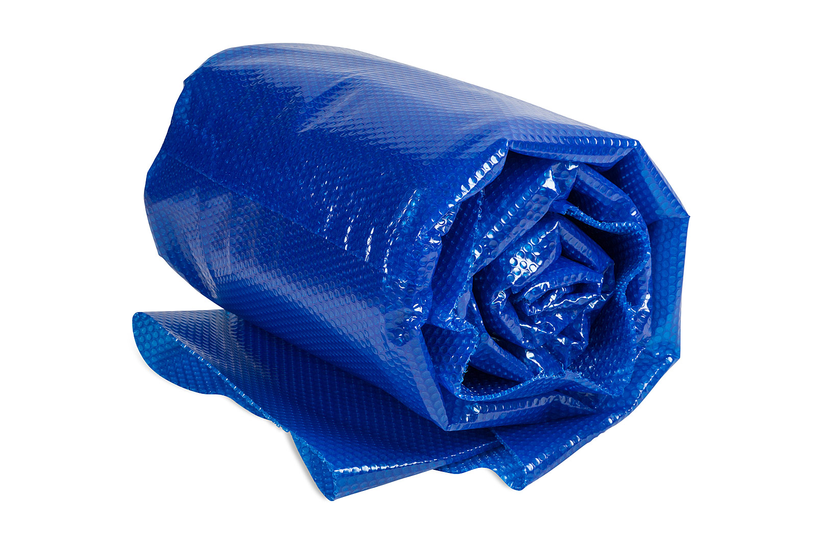 - Die Plane schwimmt auf dem Wasser mit den Blasen nach unten und wirkt als thermische Isolierung, um die Wassertemperatur zu halten.