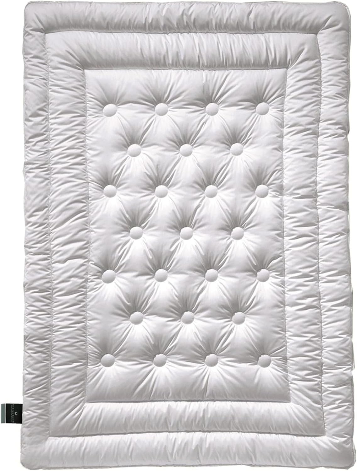Die Billerbeck Sommerdecke Natur BRILLIANT LIGHT ist die ideale Wahl für warme Sommernächte. Gefüllt mit 100% flauschigem Kamelhaar, bietet sie einen hervorragenden Temperaturausgleich und individuellen Schlafkomfort. Mit 2 von 5 Wärmepunkten ist sie besonders leicht und sorgt für ein angenehmes Schlafklima. Der Bezug aus superfeinem Satin aus 100% Baumwolle ist hydrophil und in der Farbe Weiß gehalten. **Highlights** - Leichte Bettdecke für warme Sommernächte - Gefüllt mit weichem Kamelhaar für individuellen Schlafkomfort - Besonders guter Temperaturausgleich - Hochwertige Qualität von Billerbeck - Superfeiner Satin-Bezug aus 100% Baumwolle **Produkteigenschaften** - Maße: 135 x 200 cm - Material: 100% flauschiges Kamelhaar - Wärmepunkte: 2 von 5 (leicht) - Steppung: Kreise mit 2 Randrollen - Bezugsmaterial: Superfeiner, extraweicher Satin aus 100% Baumwolle - Farbe: Weiß