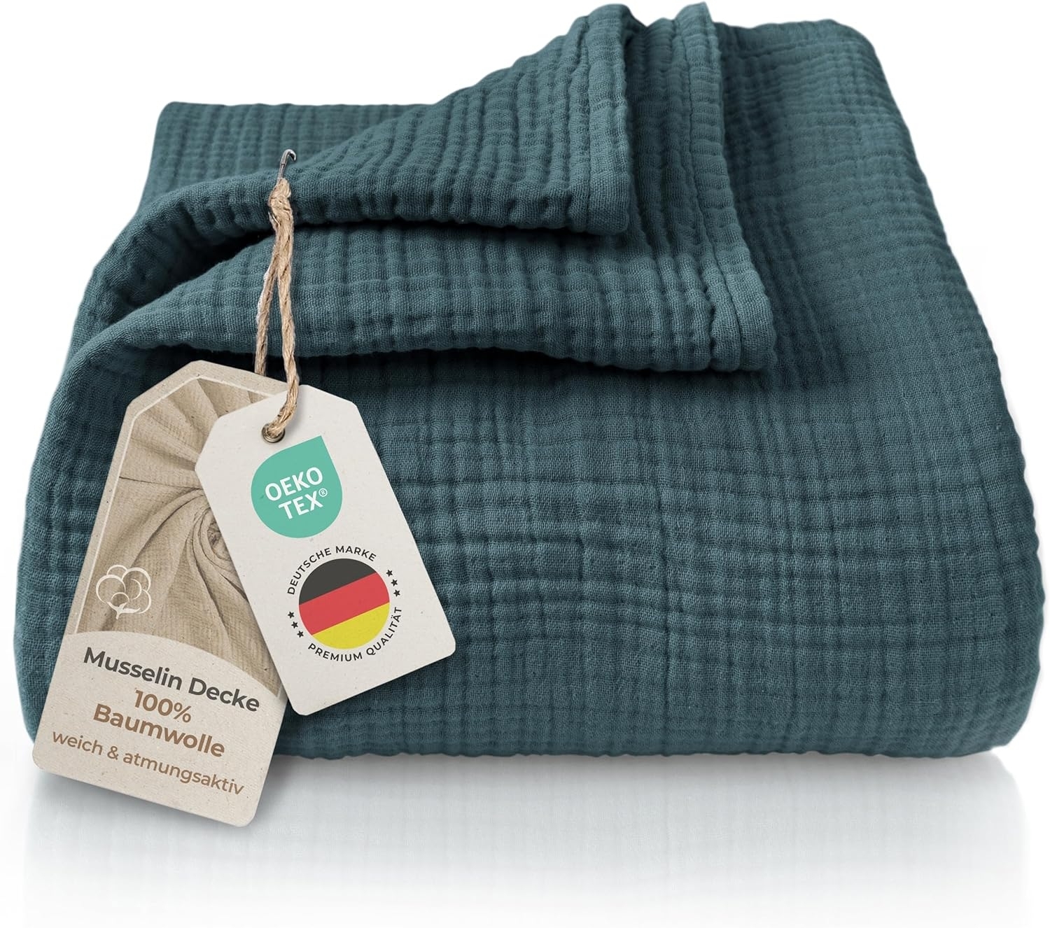 - Die sanfte Musselin-Struktur ist hautfreundlich und atmungsaktiv, ideal für empfindliche Haut oder Kinder.