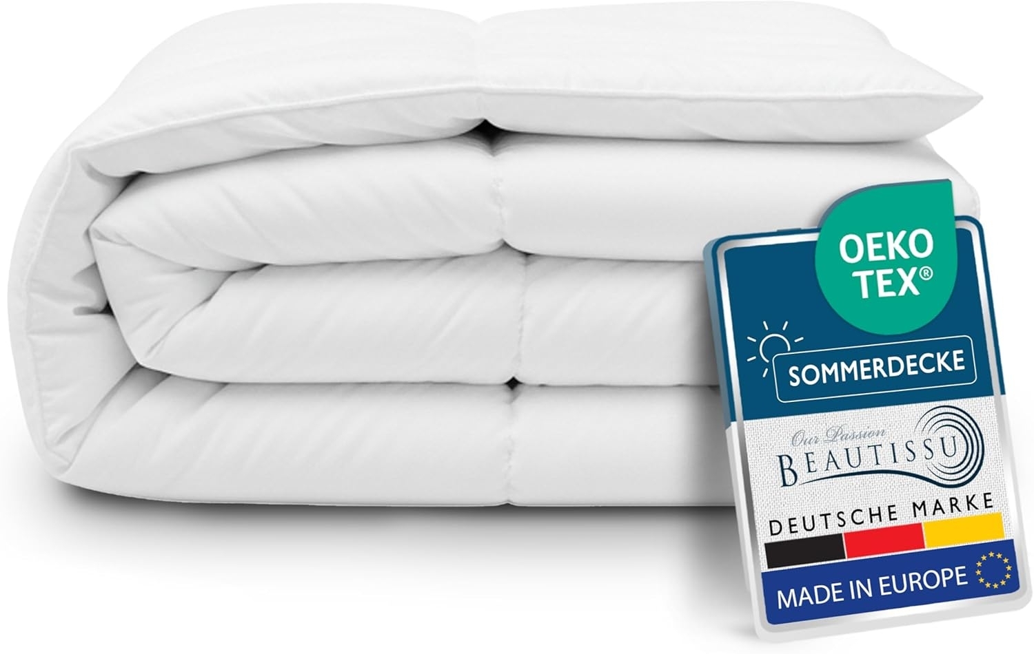 | Beschreibung | Die Beautissu BeauNuit SD Bettdecke in der Größe 155 x 220 cm ist eine leichte Mikrofaser Sommerdecke mit klimaregulierender Füllung. Sie bietet eine hohe Atmungsaktivität und ist besonders allergikerfreundlich. Mit einem eingenähten Einfassband gegen Verrutschen und der Möglichkeit, sie bei 60 °C zu waschen, ist diese Decke praktisch und pflegeleicht. Ideal für warme Sommernächte dank optimaler Feuchtigkeitsregulierung. **Highlights** - Leichte Mikrofaser Sommerdecke - Klimaregulierende Füllung - Allergikerfreundlich - Waschbar bei 60 °C - Atmungsaktiv und feuchtigkeitsausgleichend **Produkteigenschaften** - Größe: 155 x 220 cm - Material: Mikrofaser - Eingenähtes Einfassband gegen Verrutschen - Optimal für warme Sommernächte - Trocknergeeignet - STANDARD 100 by OEKO-TEX unter der Prüfnummer 17.HBG.26231 |