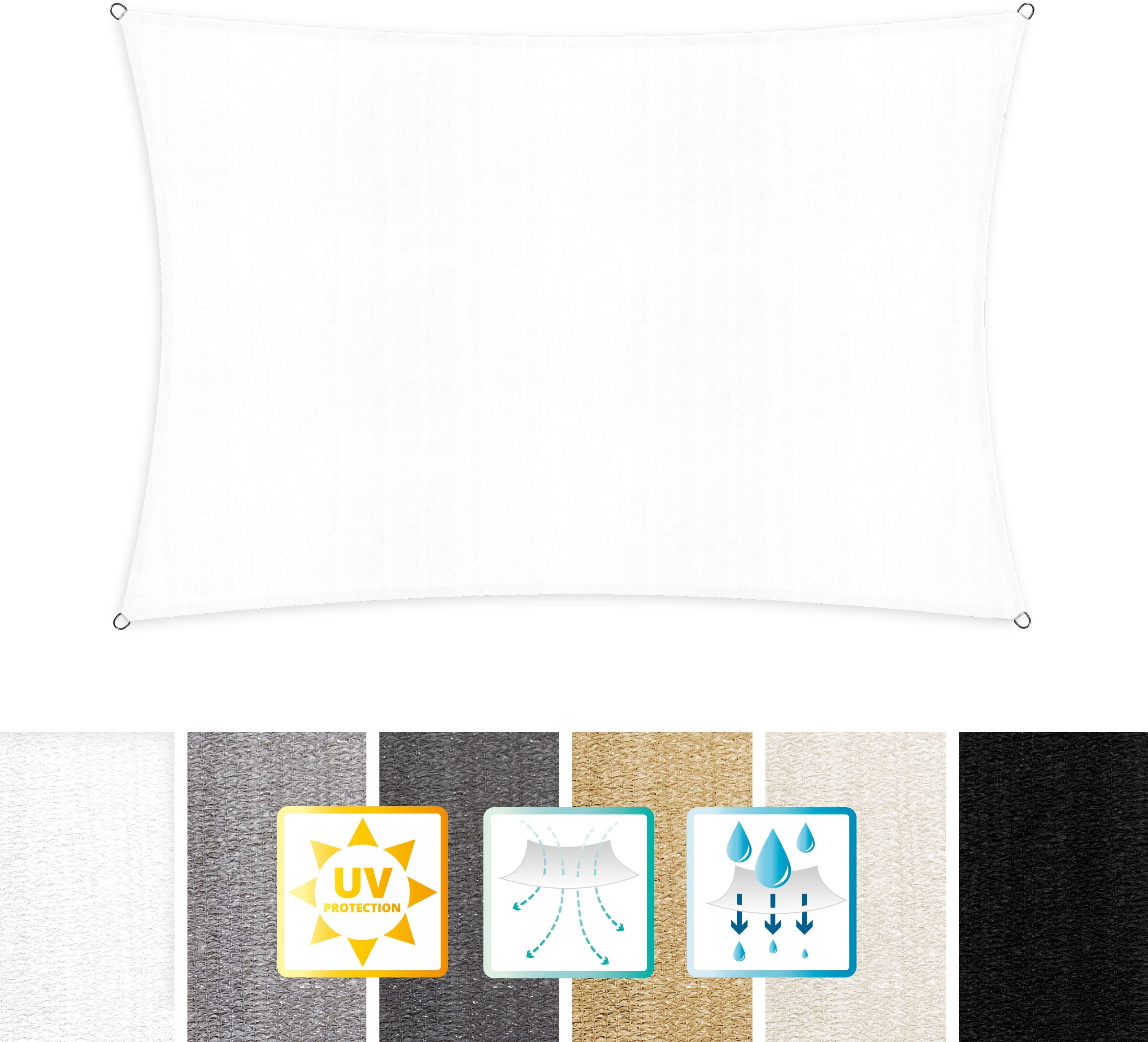 | Name | Lumaland Sonnensegel 100% HDPE mit Stabilisator für UV-Schutz - Rechteck 3x4 Meter - Weiß |