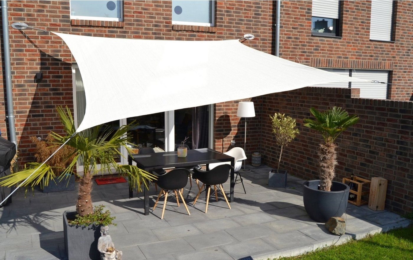 | Lieferumfang | 1x Sonnensegel, 4x Spanngurt, 4x Ringösenschraube |