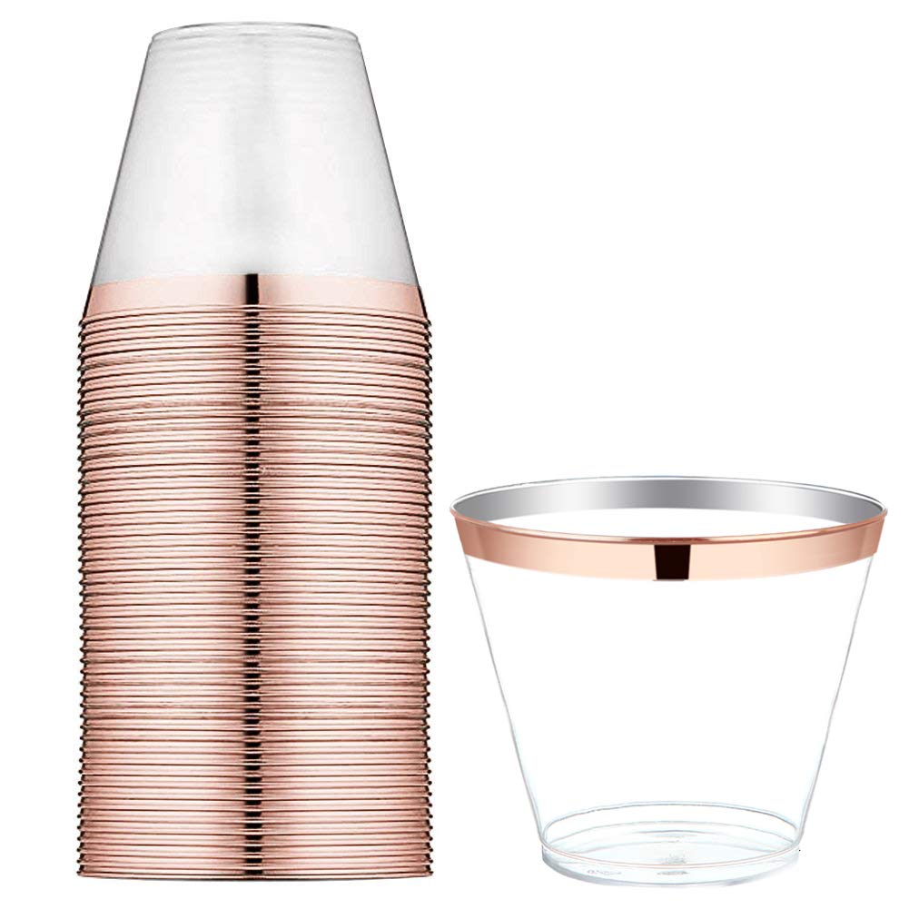 in Sonstiges Barzubehör100 Stück Roségoldene Teller mit Einweg-Kunststoffbesteckelegantes Geschirr-Set enthält: 20 Speiseteller, 20 Dessertteller, 20 Gabeln, 20 Messer, 20 Löffel 102 rose gold cups