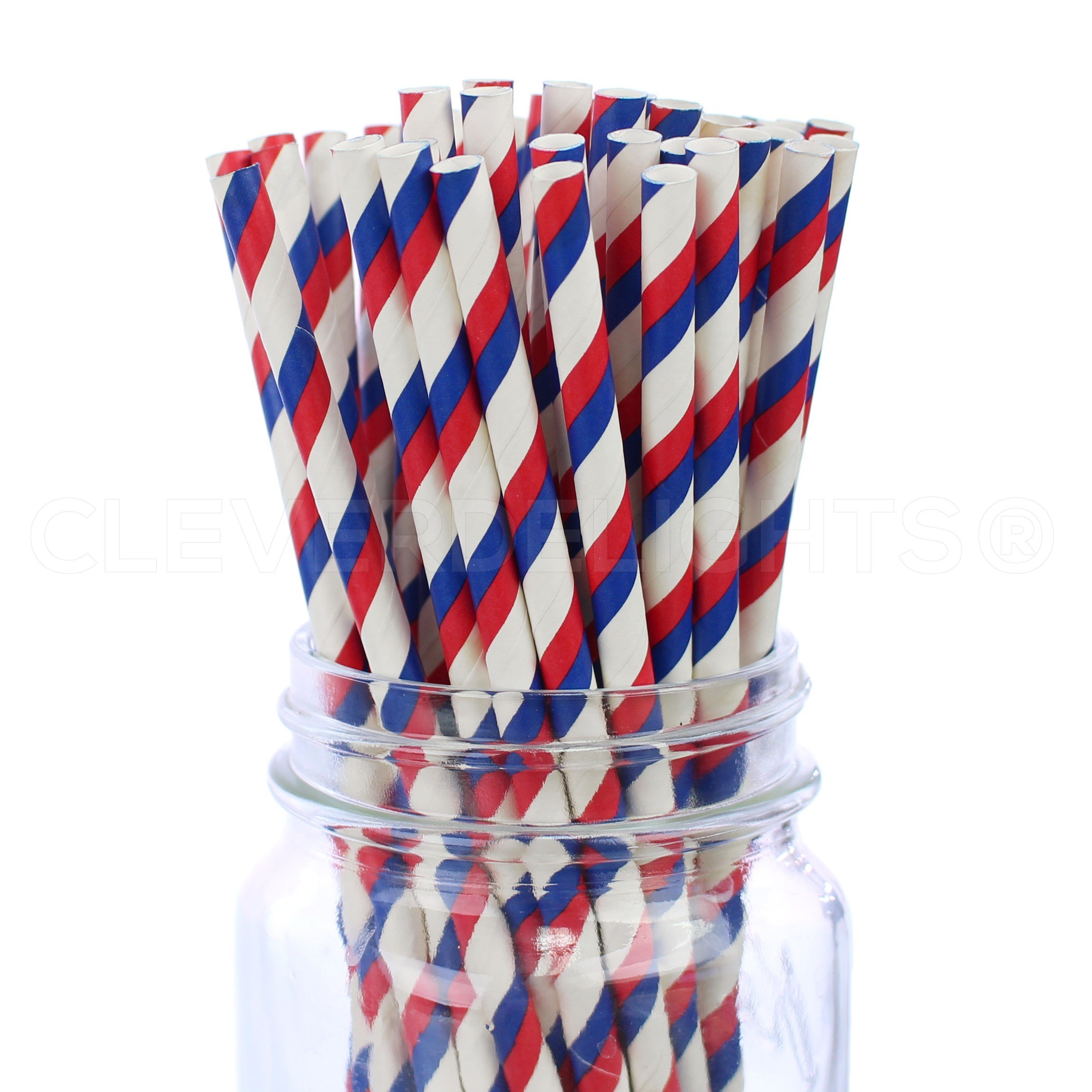 cleverdelights rot und blau Streifen Trinkhalme -100 Trinkhalme -biologisch abbaubar Papier Trinkhalme