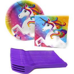 Einhorn Party Supplies Rainbow Einweg Geschirr Set: Kuchen PapptellerServietten und Gabeln