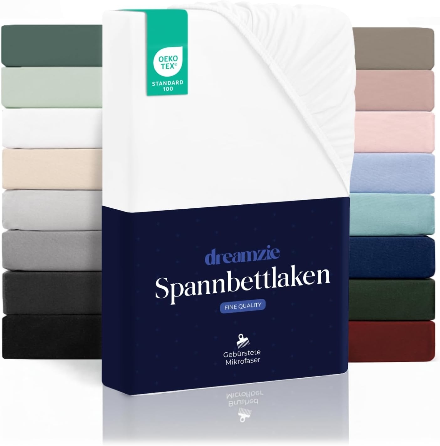 | Name | Dreamzie Spannbetttlaken 180x200 cm - Hoher Steg bis 33 cm - 100% Mikrofaser - Weiß - Schadstoffgeprüft (Oeko TEX), Bettlaken mit Gummizug |
