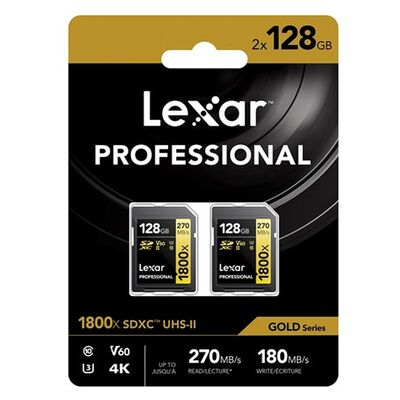 Lexar SDXC Professional UHS-II BL 1800x V60 gold 2erPACK 128 GB (LSD1800128G-B2NNG)