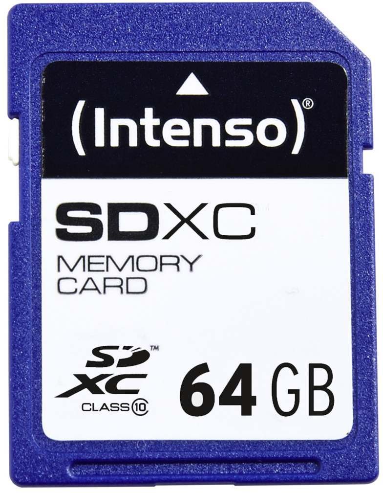 - Die Intenso SDXC 64GB Class 10 Speicherkarte bietet mit 64GB ausreichend Platz für umfangreiche Dateien wie hochauflösende Fotos und 4K-Videos.