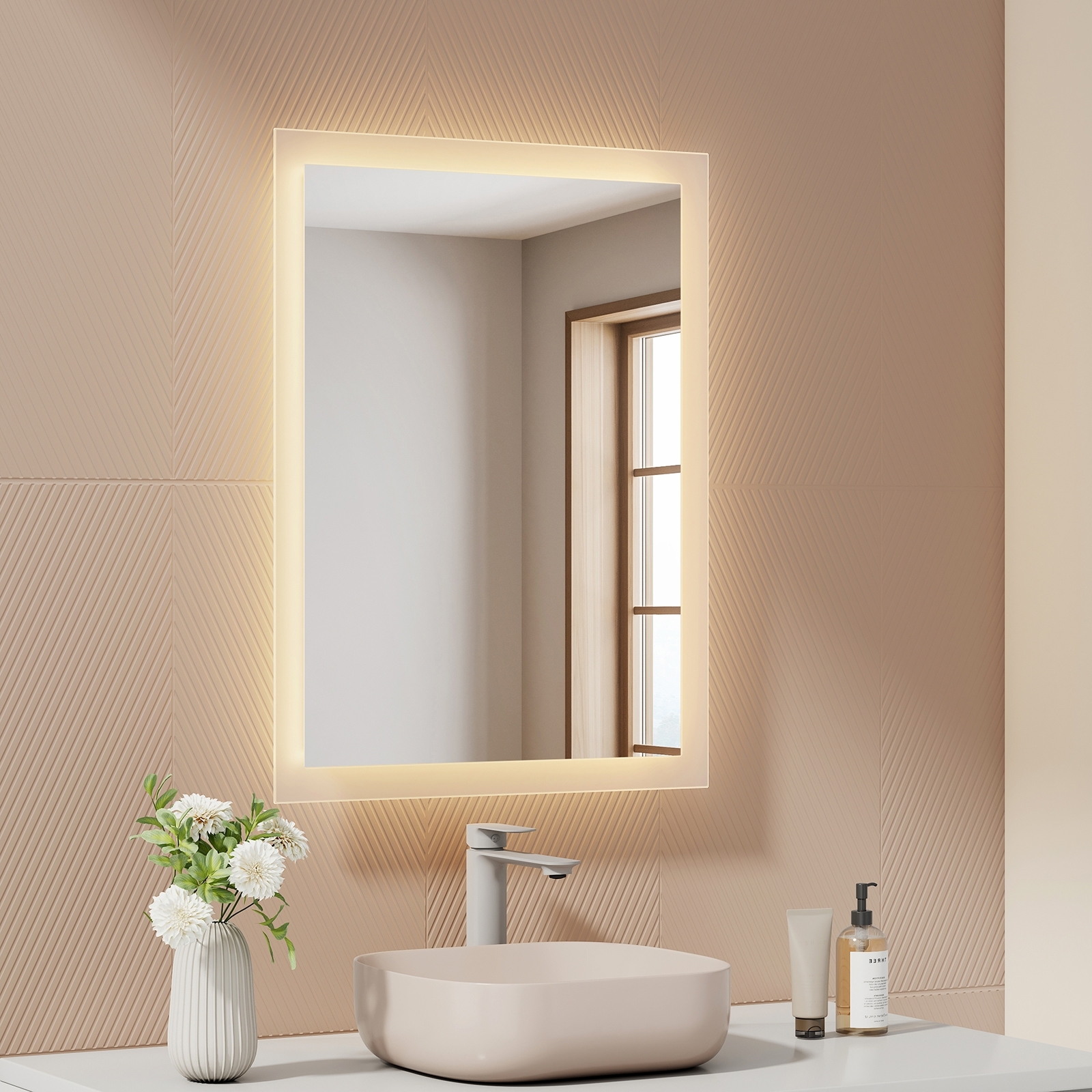 | Name | EMKE Badspiegel mit Beleuchtung, 60x45cm, Kaltweißes/Warmweißes Licht, Knopfschalter, Beschlagfrei, Speicherfunktion |