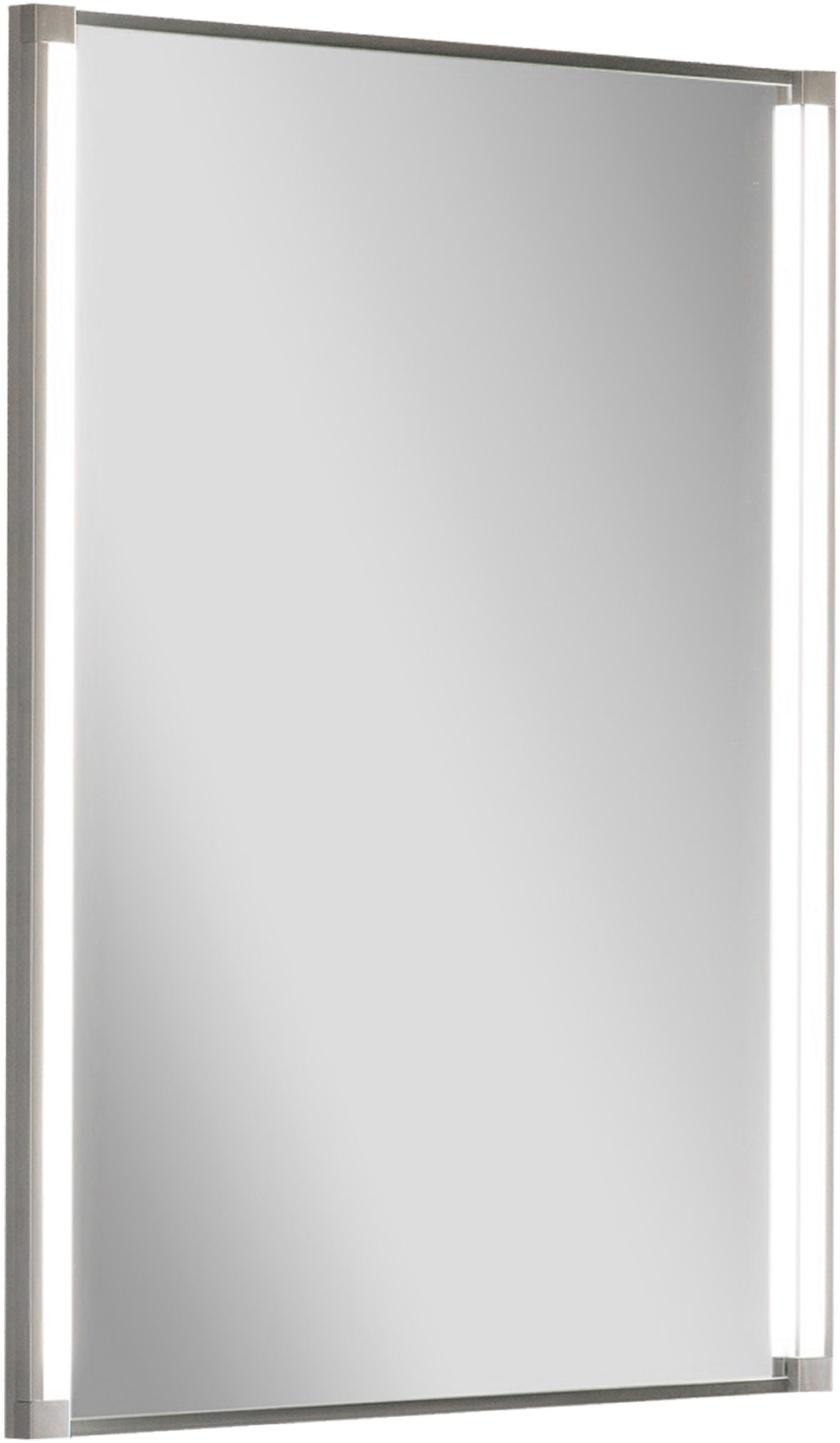 Der moderne Fackelmann LED Spiegel mit einer Breite von 43 cm und einer Höhe von 67 cm sorgt für angenehmes Licht in Ihrem Badezimmer. Die Beleuchtung erfolgt von beiden Seiten, wodurch wichtige Partien optimal ausgeleuchtet werden. Mit einer Helligkeit von 2 x 525 Lumen und einem Farbton von Tageslicht (6000 - 6500 Kelvin) passt der Spiegel perfekt in kleine Bäder oder Gäste-WCs. Die Leuchtmittel sind austauschbar und die Trägerplatte ist silbergrau. **Highlights** - Beleuchtung von beiden Seiten für ein angenehm beleuchtetes Spiegelbild - Trägerplatte in silbergrau für einen modernen Look - Einfache Installation und anschlussfertige Lieferung **Produkteigenschaften** - Maße: 43 cm Breite, 67 cm Höhe, 4 cm Tiefe - LED-Beleuchtung mit 2 x 525 Lumen - Farbton: Tageslicht (6000 - 6500 Kelvin) - Leuchtmittel austauschbar - Inklusive Wandbefestigung **Lieferumfang** - Fackelmann LED Spiegel 43 cm - Wandbefestigung