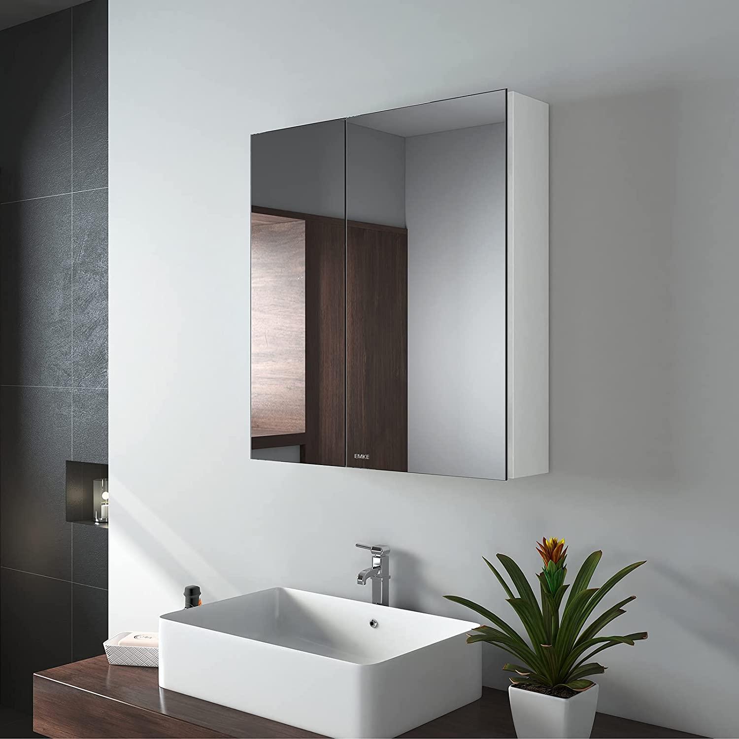 Name EMKE Spiegelschränke 60x65cm Spiegelschrank Badschrank mit Doppelseitiger Spiegel (Weiß)