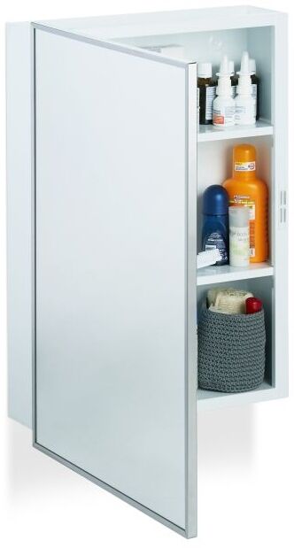 Ein praktischer Hängeschrank für das Badezimmer von Relaxdays. Der eintürige Spiegelschrank aus Stahl bietet mit 3 Ablagen viel Stauraum für Kosmetik und Accessoires. Er kann einfach im Bad oder Gäste-WC montiert werden und ist bereits fertig aufgebaut. Maße: 56 x 40,5 x 12,5 cm, Farbe: Weiß. **Highlights** - Vereint Aufbewahrungsmöglichkeit mit Spiegel - Viel Stauraum auf 3 Ablageflächen - Eintüriges Design mit individuell anbringbarem Türanschlag - Aus robustem Stahl gefertigt - Fertig montiert für einfache Installation **Produkteigenschaften** - Material: Stahl - Farbe: Weiß - Maße: 56 x 40,5 x 12,5 cm - Anzahl der Türen: 1 - Anzahl der Einlegeböden: 2