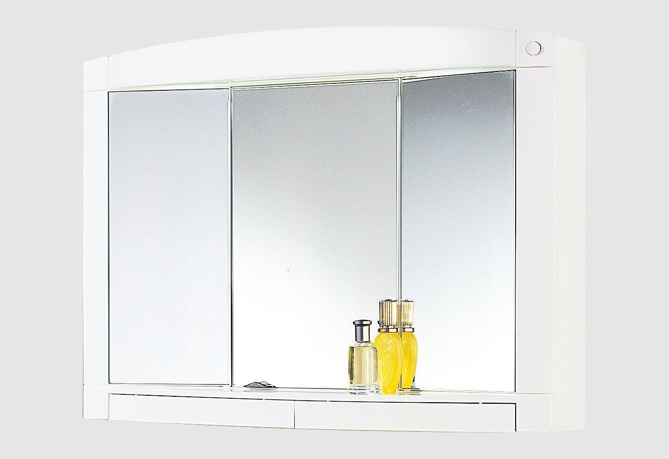 | Beschreibung | Der Jokey Spiegelschrank Swing in Weiß überzeugt durch seinen feuchtigkeitsbeständigen Kunststoff-Korpus und bietet mit verstellbaren Schrankeinlagen, Türablageschalen, Zahnbürstenhalter und zwei Schubkästen viel Stauraum. Die drei Spiegeltüren aus Kristallglas mit 3-D-Effekt verleihen dem Schrank ein ansprechendes Design. Eine integrierte Elektrobox mit Steckdose und separatem Lichtschalter sorgt für optimale Funktionalität. **Highlights** - Feuchtigkeitsbeständiger Kunststoff-Korpus - Drei Spiegeltüren aus Kristallglas mit 3-D-Effekt - Integrierte Elektrobox mit Steckdose und Lichtschalter - Verstellbare Schrankeinlagen und Türablageschalen - Made in Germany **Produkteigenschaften** - Maße: 76 x 58 x 18 cm (BxHxT) - Korpus-Farbe: Weiß - Material: Kunststoff, Spiegeltür aus Kristallglas - Beleuchtung: für 18 W T8 Leuchtstofflampe (nicht inklusive) - 7 verstellbare Türablageschalen - Zahnbürstenhalter - 2 Schubkästen - Energieeffizienzklasse: A+ - B - Schutzkontaktsteckdose **Lieferumfang** - Jokey Spiegelschrank Swing - Montageanleitung - Ohne Leuchtstofflampe |