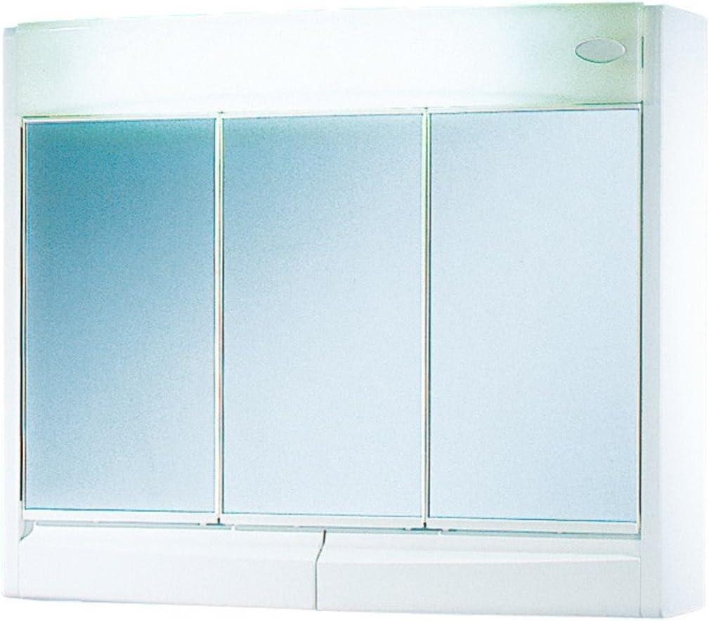 Der Jokey Spiegelschrank Saphir in Weiß bietet mit einer Breite von 60 cm eine praktische Lösung für Ihr Badezimmer. Der widerstandsfähige Kunststoff-Korpus schützt vor Feuchtigkeit und sorgt für Langlebigkeit. Ausgestattet mit drei Kristallglas-Spiegeltüren, zwei Schubkästen und verstellbaren Schrankeinlagen, bietet er ausreichend Stauraum. Die integrierte LED-Beleuchtung mit 6 W und neutralweißem Licht (4000 K) sorgt für eine angenehme Ausleuchtung. **Highlights** - Widerstandsfähiger Kunststoff-Korpus gegen Feuchtigkeit - Drei pflegeleichte Kristallglas-Spiegeltüren - Integrierte LED-Beleuchtung mit 540 lm - Höhenverstellbare Einlegeböden aus Kunststoff - Qualitätssiegel Made in Germany **Produkteigenschaften** - Maße (B x H x T): 60 x 51 x 18 cm - Zwei Schubkästen für zusätzlichen Stauraum - Feste Türablageschalen - Integrierte Steckdose und Schalter - Einfache Montage dank vormontierter Lieferung **Lieferumfang** - Jokey Spiegelschrank Saphir - Montagematerial - Leuchtmittel inklusive