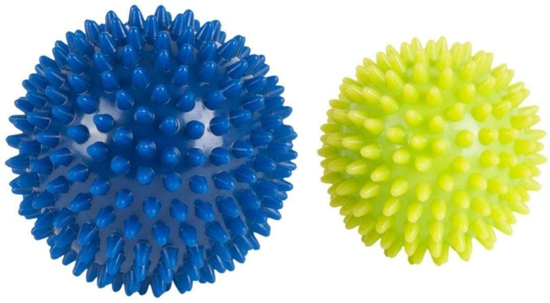 - Das Set besteht aus 2 Massagebällen in den Farben lemon und blau mit Durchmessern von 75 mm und 90 mm.