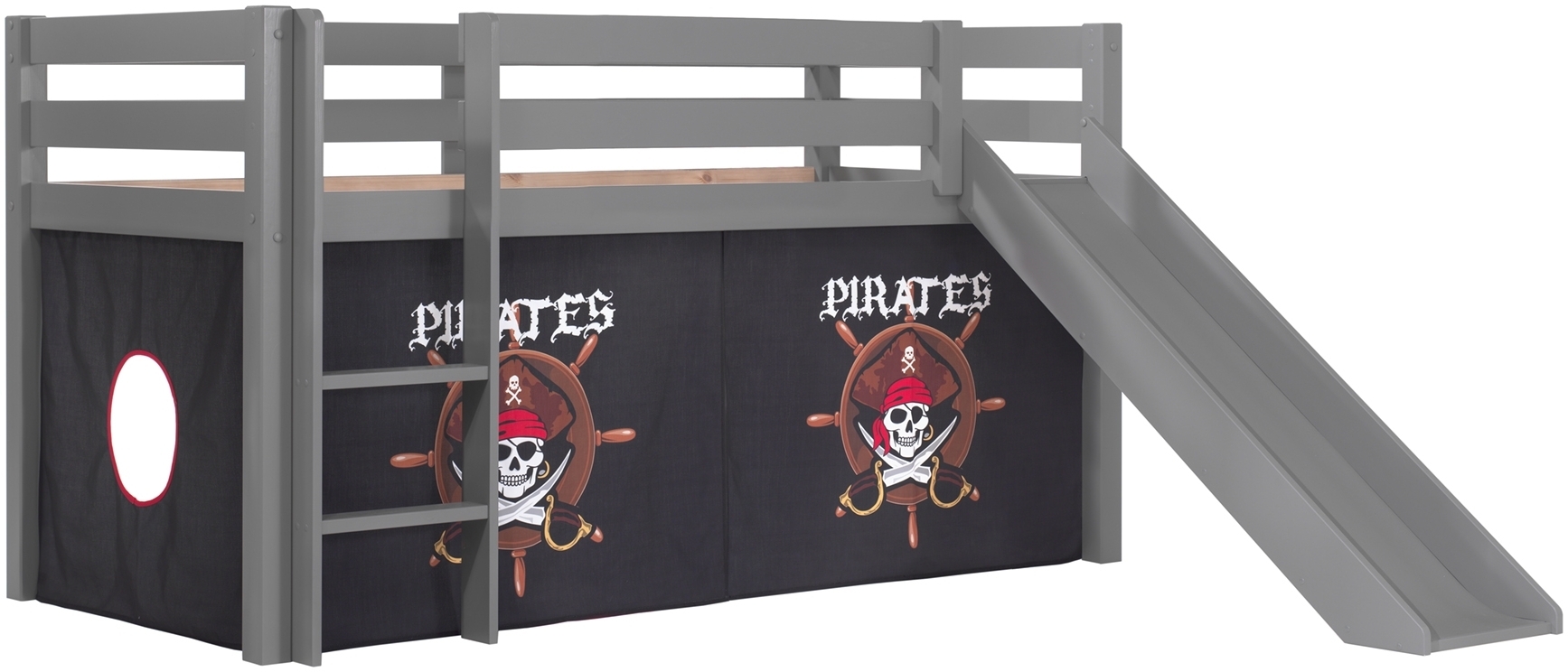 Name Vipack Spielbett 'Pino' mit Rutsche grau und Textilset \"Pirates\"
