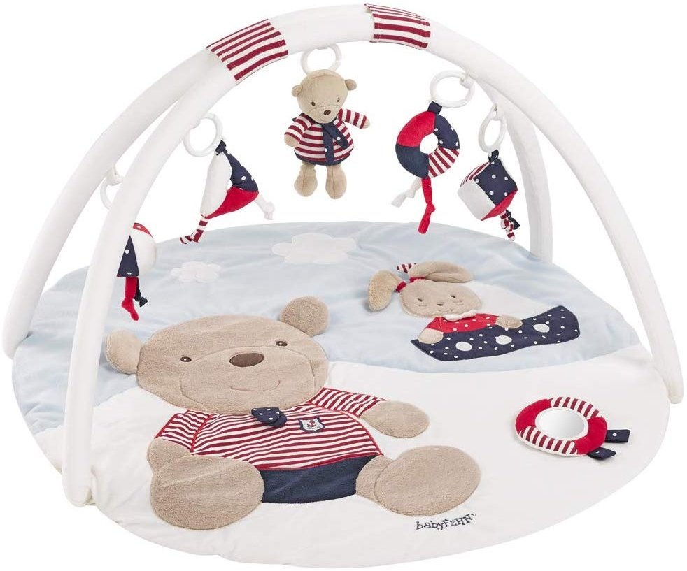 - Der Spielbogen »Ocean Club« von fehn® bietet eine vielseitige Erlebnisdecke, die sowohl im Liegen als auch beim Krabbeln genutzt werden kann.