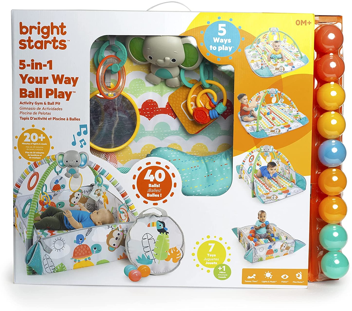 | Name | Bright Starts, 5-in-1 Your Way Ball Play Erlebnisdecke & Bällebad mit 40 Bällen - Totally Tropical, Spieldecke mit Spielbogen, 20+ Minuten Licht und Musik, Krabbeldecke mit 7 Spielzeuge, ab der Geburt |