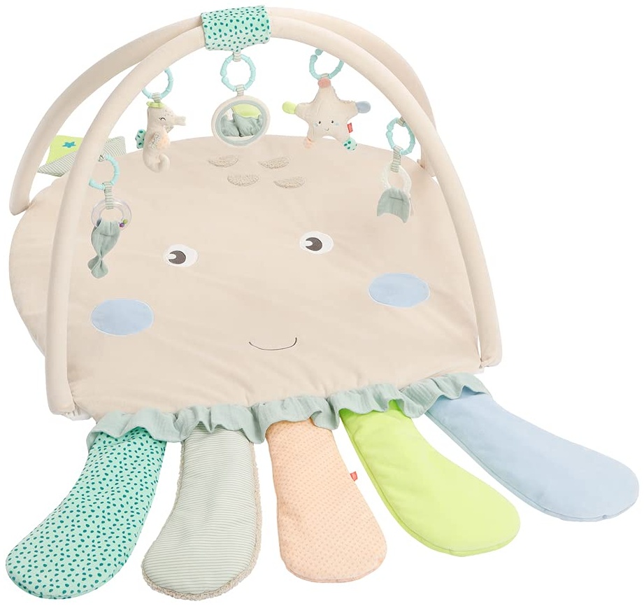 - Die 3D Activity Decke Oktopus von Fehn bietet eine große Spielfläche in Oktopus-Form, die die Fantasie anregt und zum Fühlen, Kuscheln und Spielen einlädt.