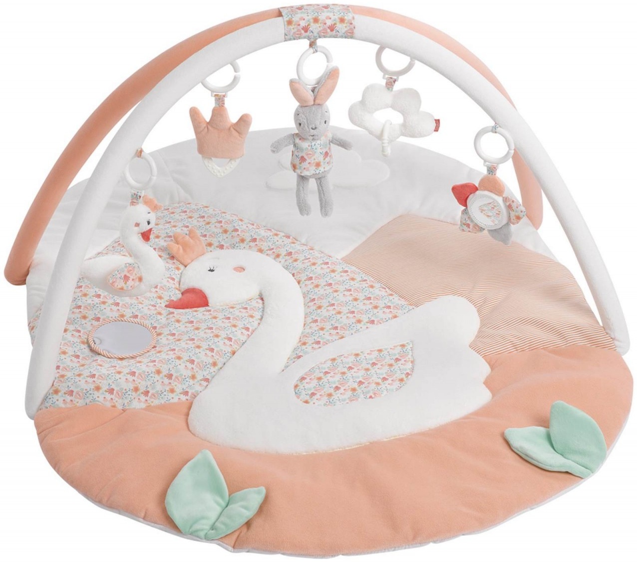 - Der Spielbogen »Schwanensee« von fehn® bietet eine vielseitige Erlebnisdecke mit einer Liegefläche aus verschiedenen Materialien, die das Baby zum Fühlen und Kuscheln einlädt.