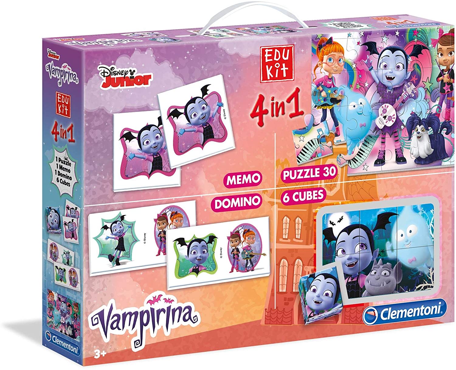 - Die Clementoni 18025 Edukit 4 in 1 Vampirina ist eine vielseitige Spielesammlung, die verschiedene Spiele in einem Set vereint.