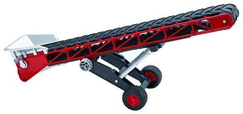 Förderbänder erleichterten den Transport von Schüttgütern wie Sand, Kies, usw. Im landwirtschaftlichen Bereich werden sie auch für Strohballen, Holzscheide, also Festkörpern, oft benutzt. Um unseren kleinen Baumeistern und Landwirten die schwere Arbeit einfacher zu machen, bringt BRUDER ein modernes Förderband auf den Markt. Das Arbeitsgerät besticht durch seine gelungene Optik und den mittels Drehknöpfen und Kurbel sehr einfach zu bedienenden Hub- und Fördermechanismen. Damit können Heuballen auf den Wagentransportiert und in die Scheune eingebracht werden, Sand oder Steinchen auf LKWs befördert aber auch entladen werden. Das Förderband lässt sich an alle BRUDER Zugfahrzeuge wie Traktoren, Unimogs, LKWs inkl. dem Sprinter aber auch an Baufahrzeuge, die über eine Anhängerkupplung verfügen, anhängen.
