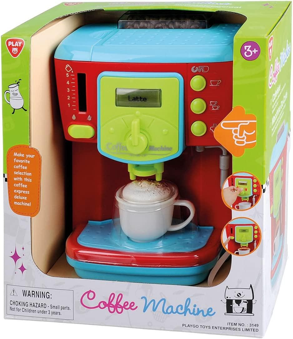 Die Besttoy Kaffeemaschine Deluxe ermöglicht es Kindern, wie die Großen Kaffee zu kochen. Mit realistischen Funktionen wie Licht, Sound und echtem Wasserdurchlauf zaubern sie in der Spielküche köstliche Kreationen. Die Maschine verfügt über eine Milchaufschäumdüse und erzeugt authentische Geräusche. **Highlights** - Realistische Kaffeezubereitungsfunktionen - Täuschend echte Milchaufschäumdüse - Authentische Geräusche beim Kaffeekochen - Maße: 23,5 x 19 x 14 cm - Batteriebetrieben (3x AA Batterien inklusive) **Produkteigenschaften** - Funktionen: Licht, Sound, echter Wasserdurchlauf - Hersteller: Besttoy - Artikel-Nr: 3650 - WEEE-Reg. -Nr. DE47286121 - Altersempfehlung: ab 3 Jahren **Lieferumfang** - Spielzeug-Kaffeemaschine - Tasse mit "Kaffee und Milchschaum" - 3 Plastikkartons mit Kaffeebohnen, Milch und Zucker - 3x AA Batterien