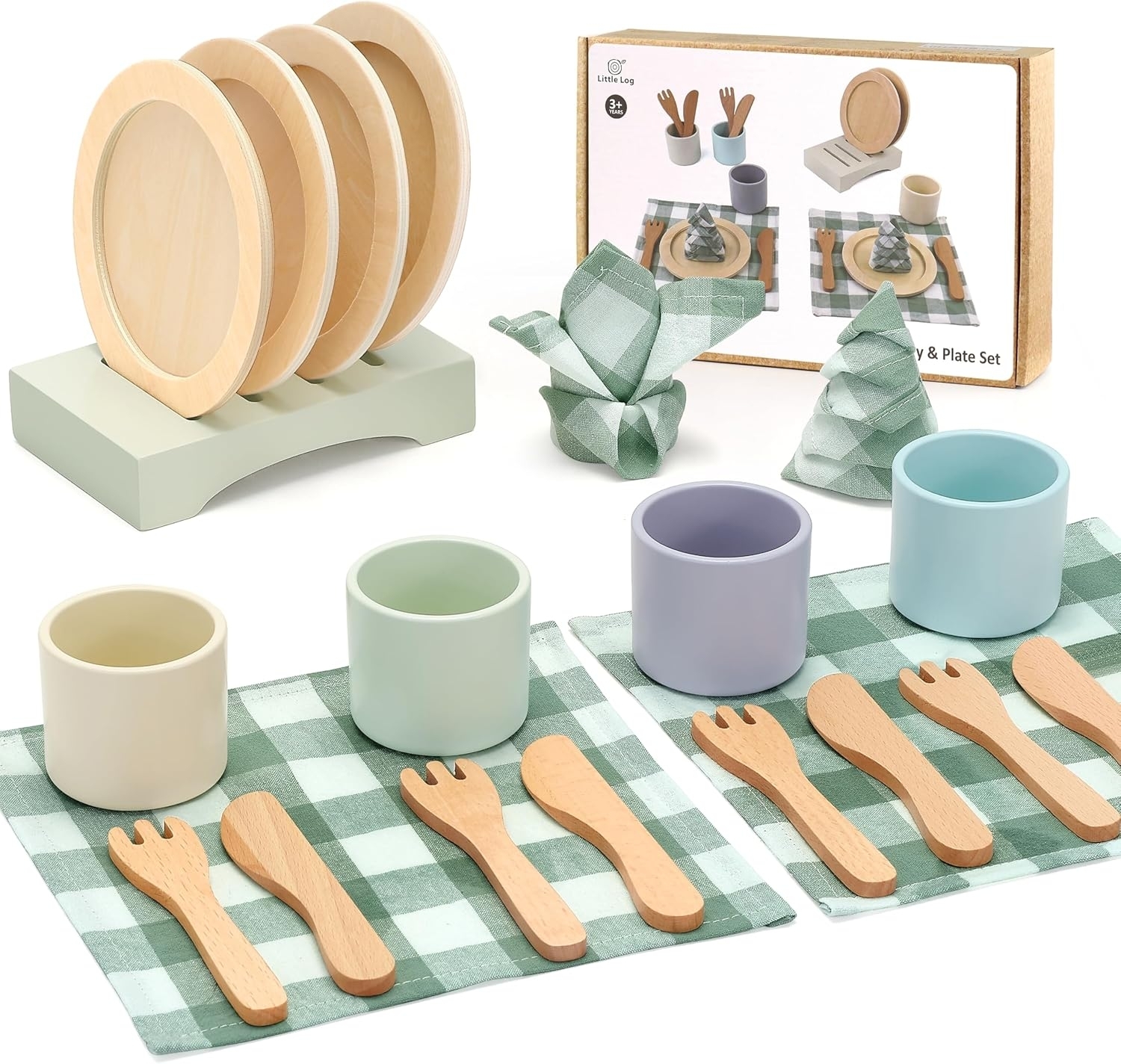 | Name | Little Log Geschirrset aus Holz Kinder spielküche zubehör Kinderküchen Set Geschenk Rollenspielzeug für Mädchen und Jungen ab 3 Jahren |