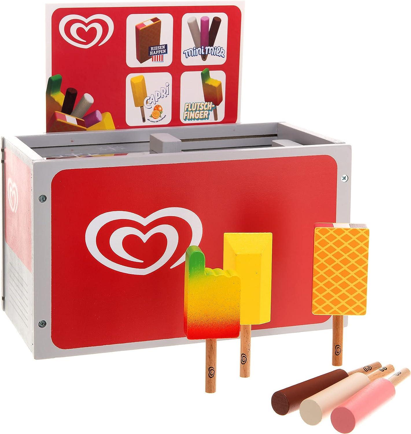 - Die Langnese Eistruhe aus Holz ist für Kinder ab 3 Jahren geeignet