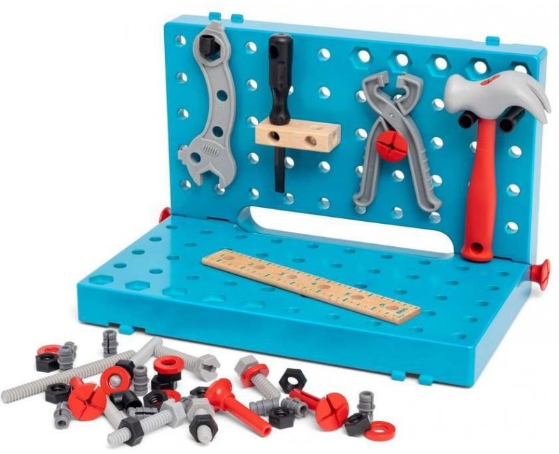 Mit der 34596 Arbeitsbank von BRIO Builder kannst du hämmern, schrauben, drehen und festziehen. Diese Arbeitsbank für Kinder ist ein toller Einstieg in die Welt des Konstruktionsspielzeugs. Dank des flexiblen Designs dieser Arbeitsbank können Kinder auf unendlich viele kreative Arten mit Werkzeugen wie Hämmern, Schraubenschlüsseln, Schraubendrehern usw. hantieren. Und wenn das Spiel beendet ist, lässt sich die Bank einfach zusammenklappen und in eine praktische, leicht zu verstauende Werkzeugkiste verwandeln. Über BRIO Builder: Fühle dich wie ein Erfinder, konstruiere, was immer du möchtest, und baue dir für jeden Tag der Woche ein neues Spielzeug – mit BRIO Builder, dem Konstruktionsspielzeug von BRIO mit den unendlichen Möglichkeiten. Einfach zu bedienende Bauwerkzeuge, Teile aus unterschiedlichen Materialien und unbegrenzte Konstruktionsmöglichkeiten ermöglichen stundenlanges kreatives Spielen und lehrreiches Experimentieren. 34596 Builder Werkbank enthält 59 Teile - 1x Werkbank/Werkzeugkasten, 1x Hammer, 1x Schraubendreher, 1x Zange, 1x Schraubenschlüssel, 1x Lineal, 52x Spielteile und 1x Anleitung. Bei Sortimenten und Großpackungen gilt der angegebene Preis pro Stück. Eine Auswahl ist nur bedingt möglich!