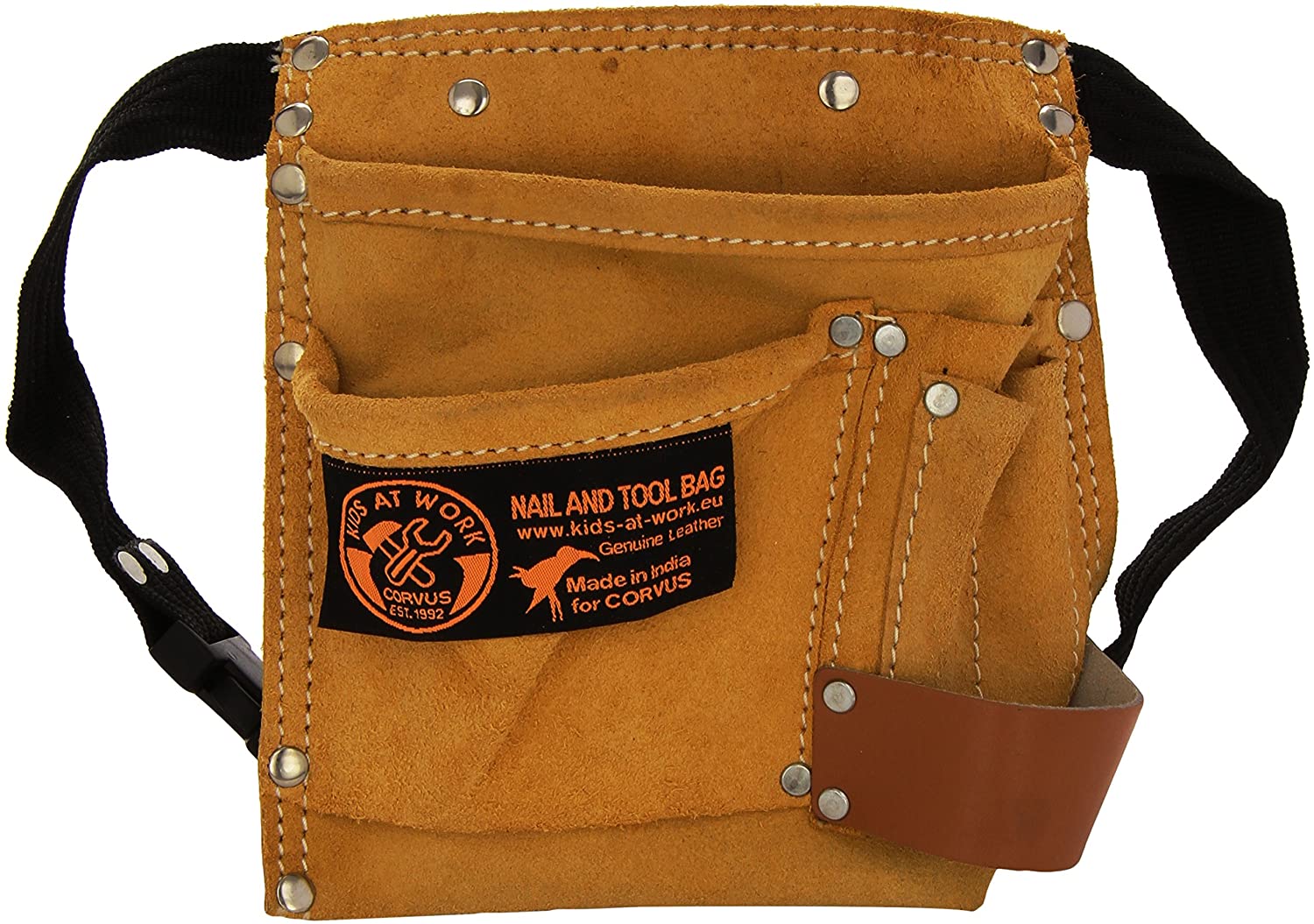 - Einseitiger Werkzeuggürtel mit einer praktischen Nageltasche, ideal für Kinder.