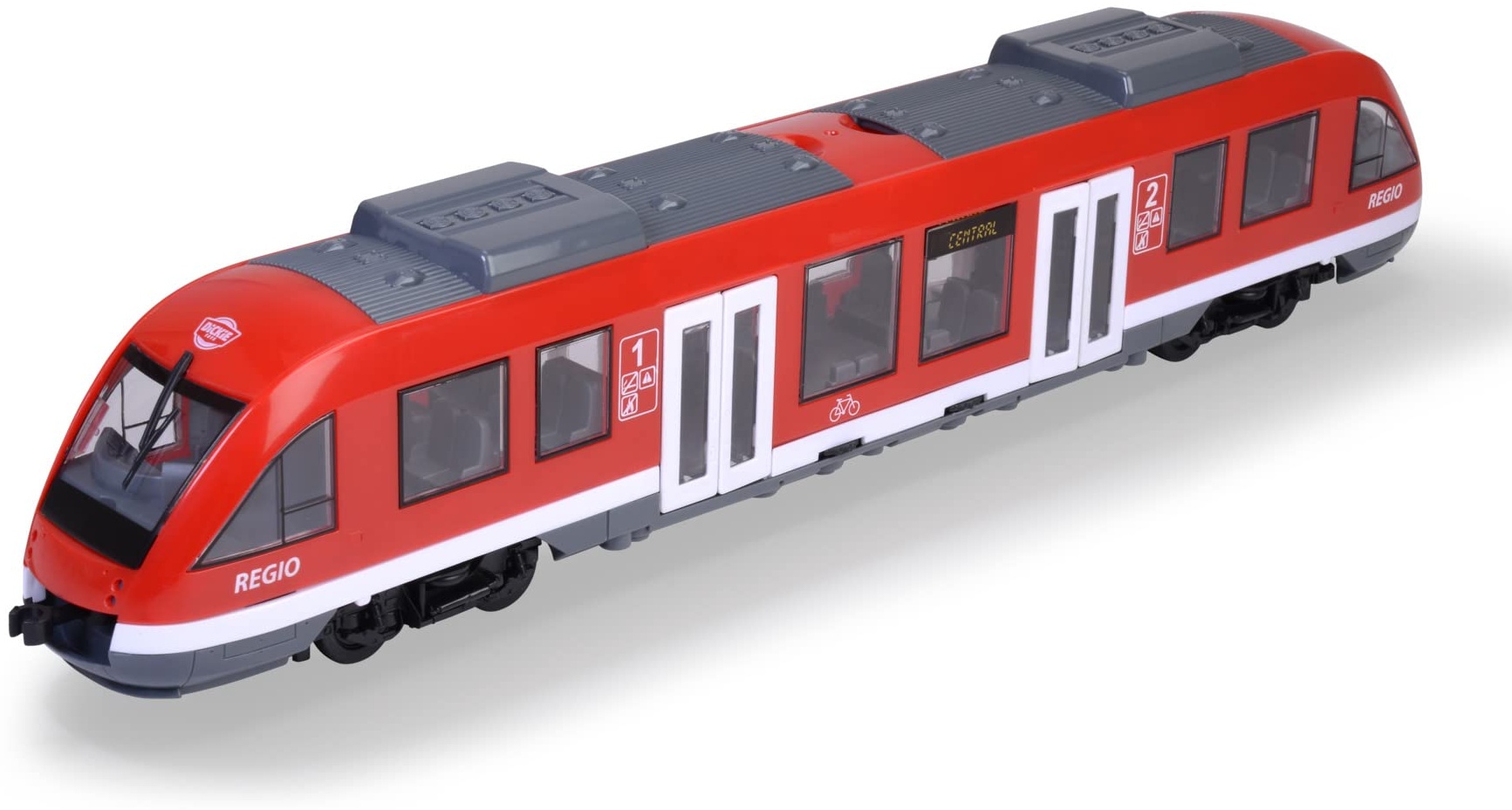 Fahrzeug mit Freilauf-Mechanik - Dieser Spielzeug-Zug für Kinder kommt ganz ohne Eisenbahn-Schienen aus! Durch seine Räder lässt er sich in jede Spielewelt oder Fahrzeug-Sammlung integrieren. Realistische Details - Der Miniatur-Zug ist mit den charakteristischen Merkmalen einer echten Regional-Bahn ausgestattet, z. B. Wagen für 1. und 2. Klasse, Kabine für den Zugführer oder Fahrradabteil. Türen & Dach zum Öffnen - Die aufklappbaren Teile ermöglichen einen Blick ins ausgestaltete Innere des großen Zugs und bietet auch Sitzplätze für kleine Spielfiguren (nicht enthalten). Vielfältige Spielemöglichkeiten - Mädchen & Jungen ab 3 Jahren können den Spielzeugzug durch das Kinderzimmer steuern, mit Figuren befüllen oder eigene Zug-Abenteuer erfinden und nachspielen. Der Spaß beginnt beim Auspacken - die ressourcenschonende Produktverpackung bietet Kindern ein echtes Unboxing-Erlebnis und verursacht dabei wenig Verpackungsmüll. Idealer Transportschutz inklusive, Hersteller: Dickie Toys