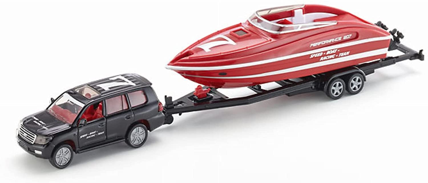 | Name | Siku 2543, PKW mit Motorboot, 1:55, Metall/Kunststoff, Schwarz/Rot, Schwimmfähiges Spielzeugboot |