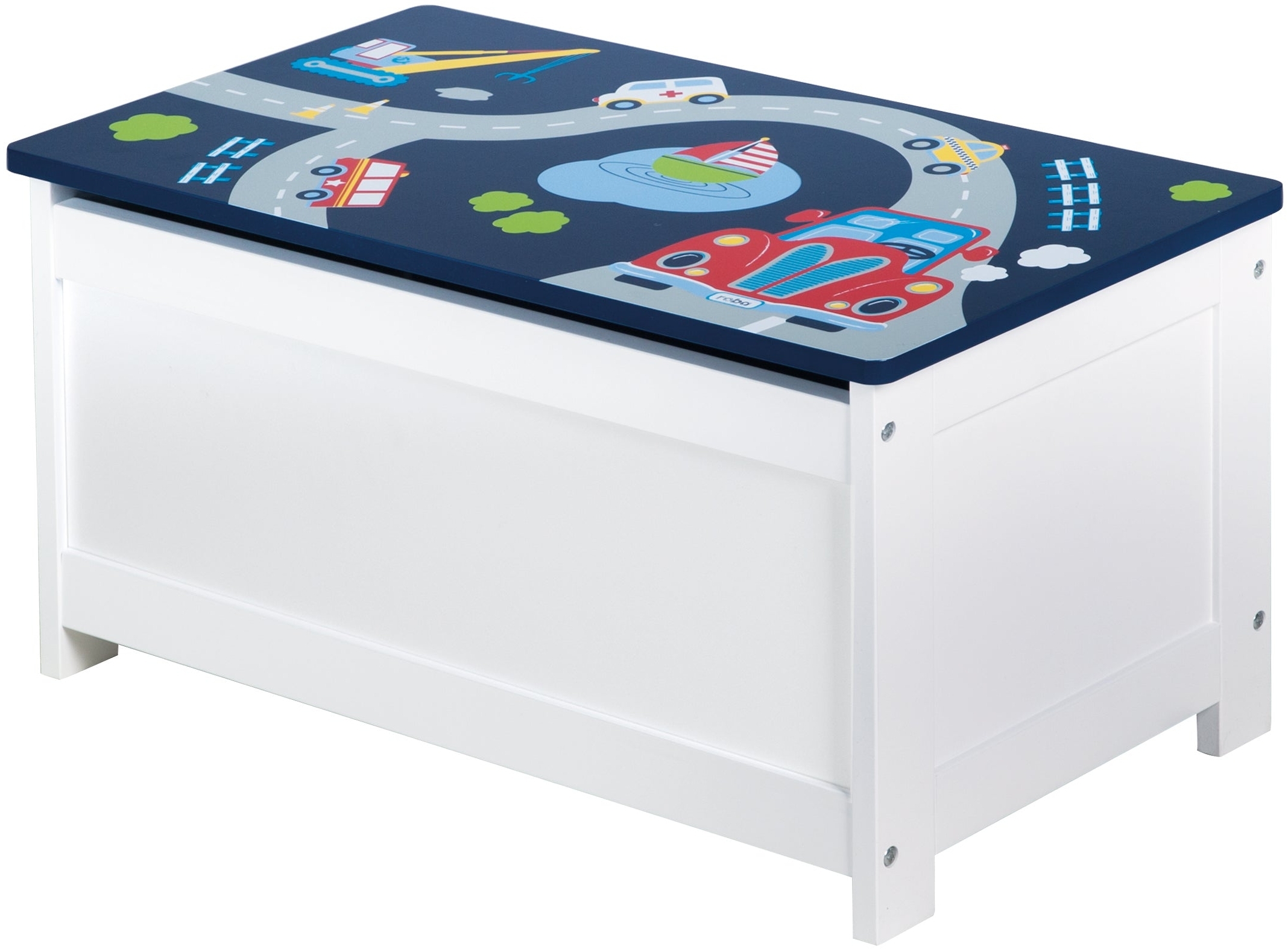 - Die roba Spielzeugtruhe 'Rennfahrer' ist aus lackiertem und bedrucktem MDF gefertigt und eignet sich ideal für Kinder im Alter von 2 bis 10 Jahren.