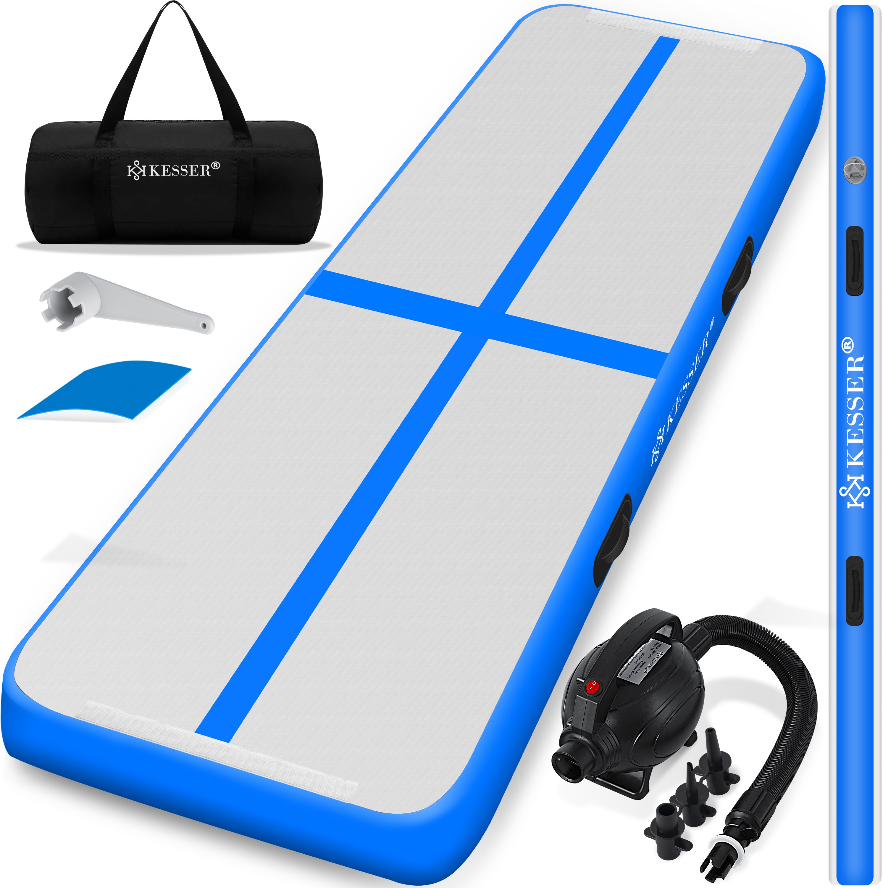 | Name | KESSER® Turnmatte Aufblasbar Airtrack Fitness-Matte Gymnastikmatte 3/4/5/6m | inkl. Tragetasche & elektr. Luftpumpe | Yogamatte, Tumbling Matten , Trainingsmatte Sportmatte Yoga, Turn- & Fitness Blau, 400 x 100 x 10 cm |