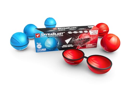 SPYRA SpyraBlast Wiederverwendbare Wasserballons -6 STK Langlebigemagnetische, weiche Silikon, selbstdichtend schnell nachfüllbare Wasserbomben, Team Rot/Blau