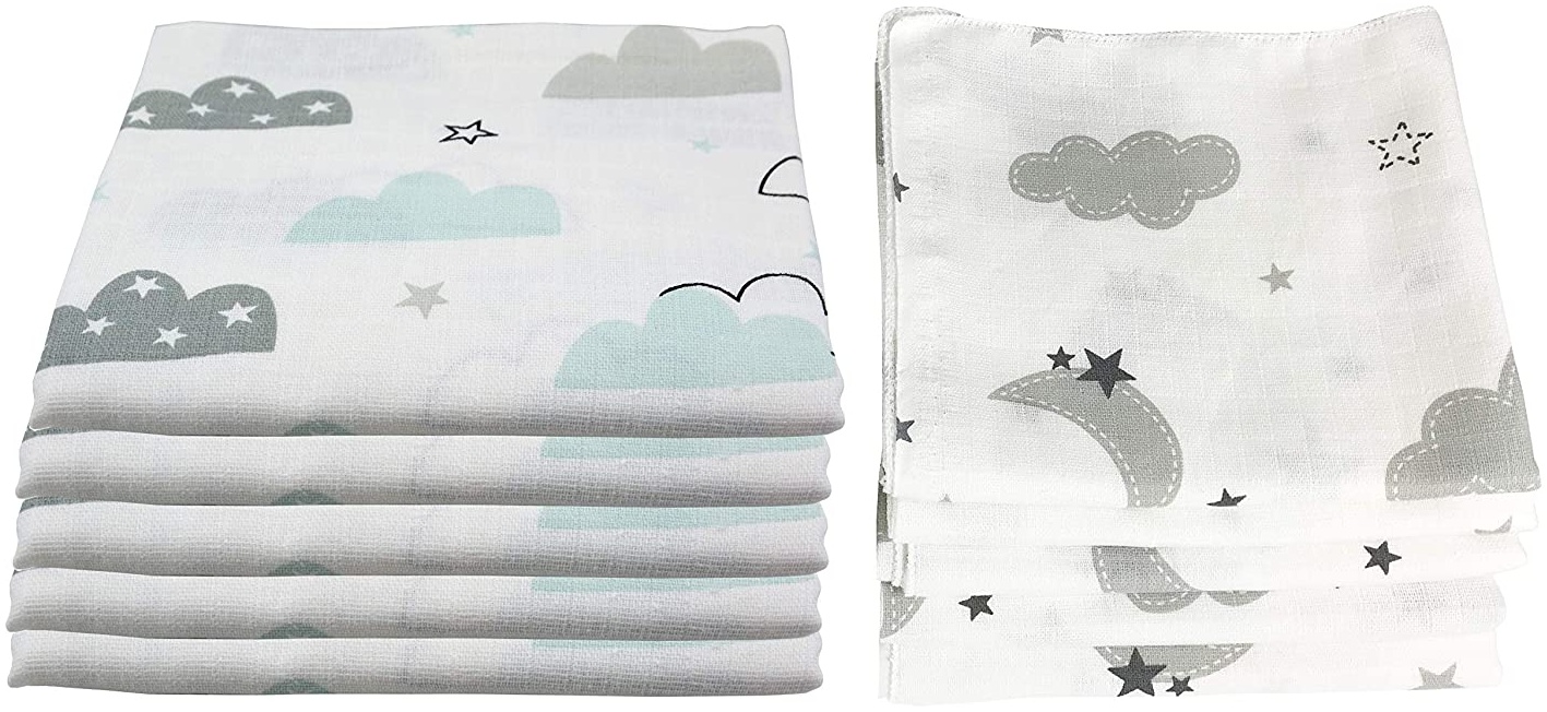 | Name | 10x Spucktücher Mullwindeln Baby Baumwolle 80x70 cm | ÖKO-TEX (Wolken (5 grau, 5 mint)) |