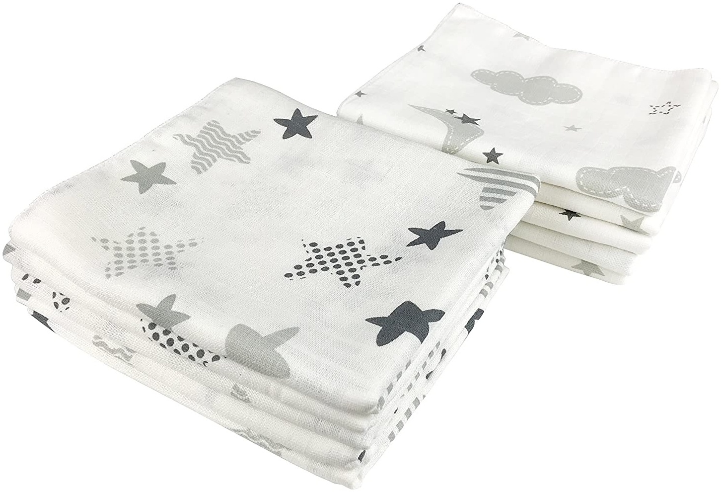 10x Spucktücher Mullwindeln Baby Baumwolle 80x70 cm | ÖKO-TEX (Wolken & Sterne)
