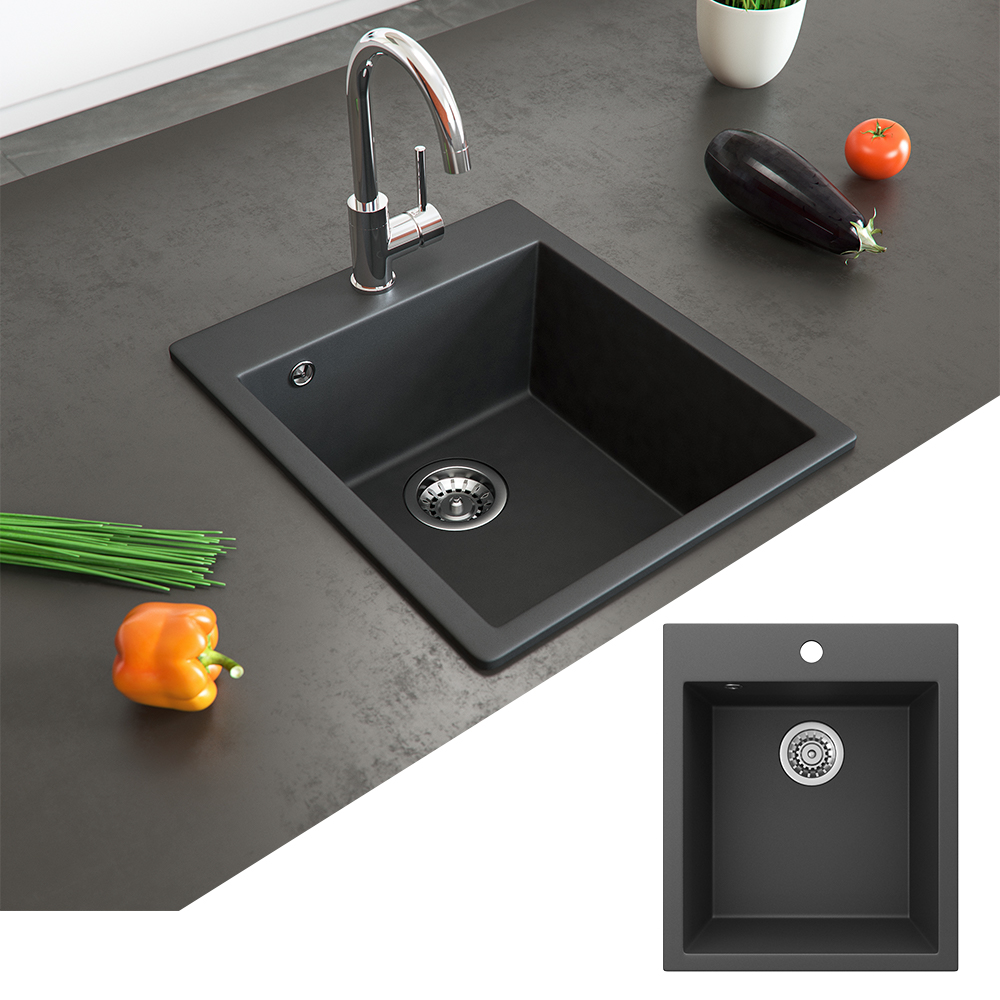 Bergström Granit Spüle Küchenspüle Einbauspüle Spülbecken Küche + Siphon Schwarz