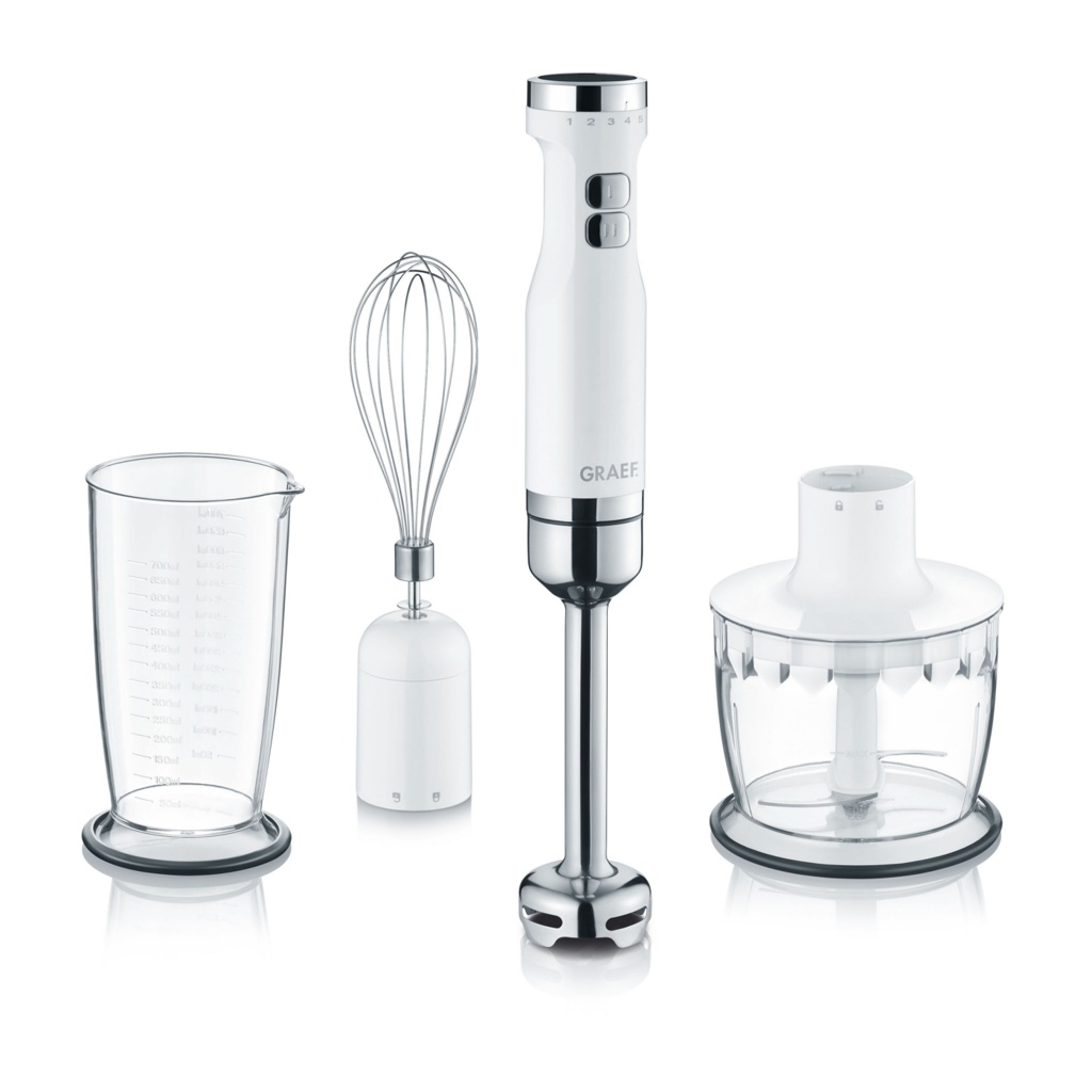 Graef HB501EU Stabmixer800W, 5 Geschwindigkeiten und Turbo-Funktion, Kunststoff, weiß, silber