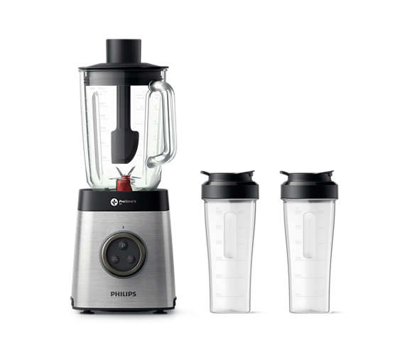 Philips HR3655-00 Standmixer (1400 Watt, ProBlend 6 3D Technologie, 2 Liter Glasbehälter, 2x Trinkbecher, Spülmaschinenfest) edelstahl