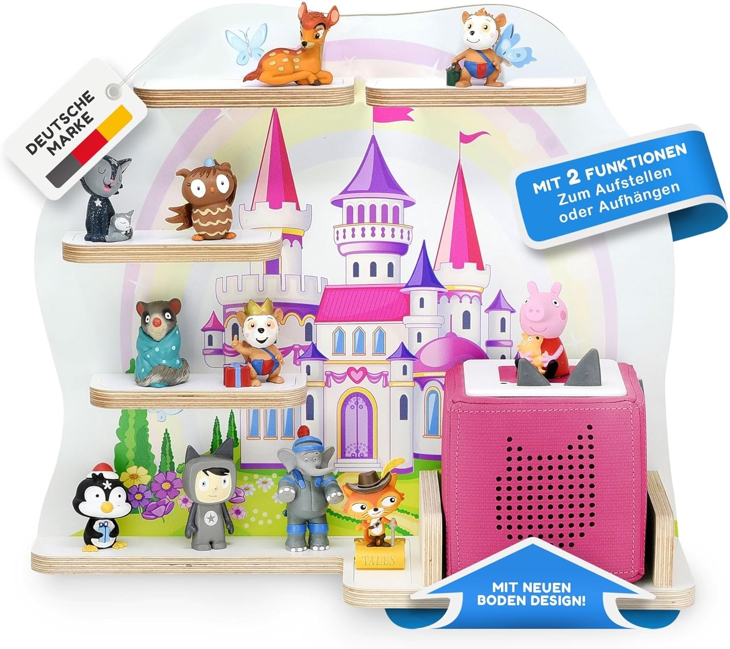 Name stadtecken Holzregal für Musikbox I passend für die Toniebox und ca. 35 Tonies I Perfekte Aufbewahrung im Kinderzimmer I zum Aufstellen oder Aufhängen (Märchenschloss)