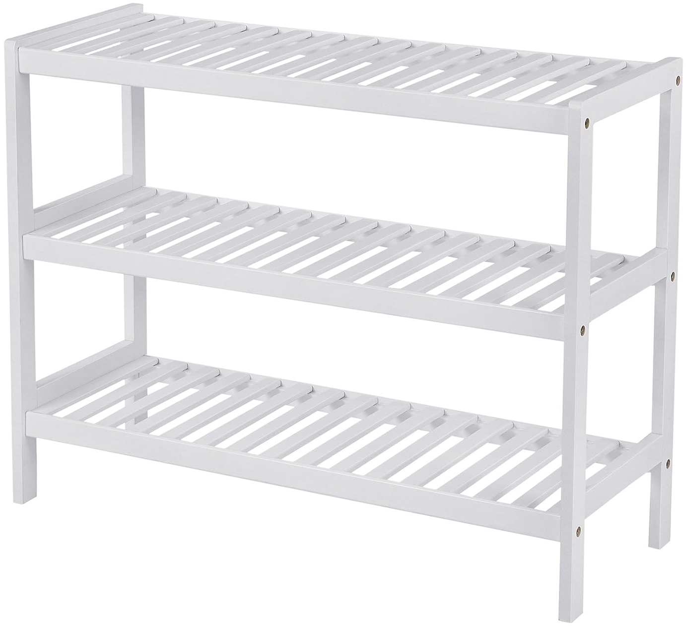 in StandregaleSchuhregal aus Bambus Schuhständer Ablageregal Schuhschrank mit 3 Ebenen Schuhablage für 12 Paar Schuhe Standregal Weiß 55 x 70 x 25 cm LBS13W